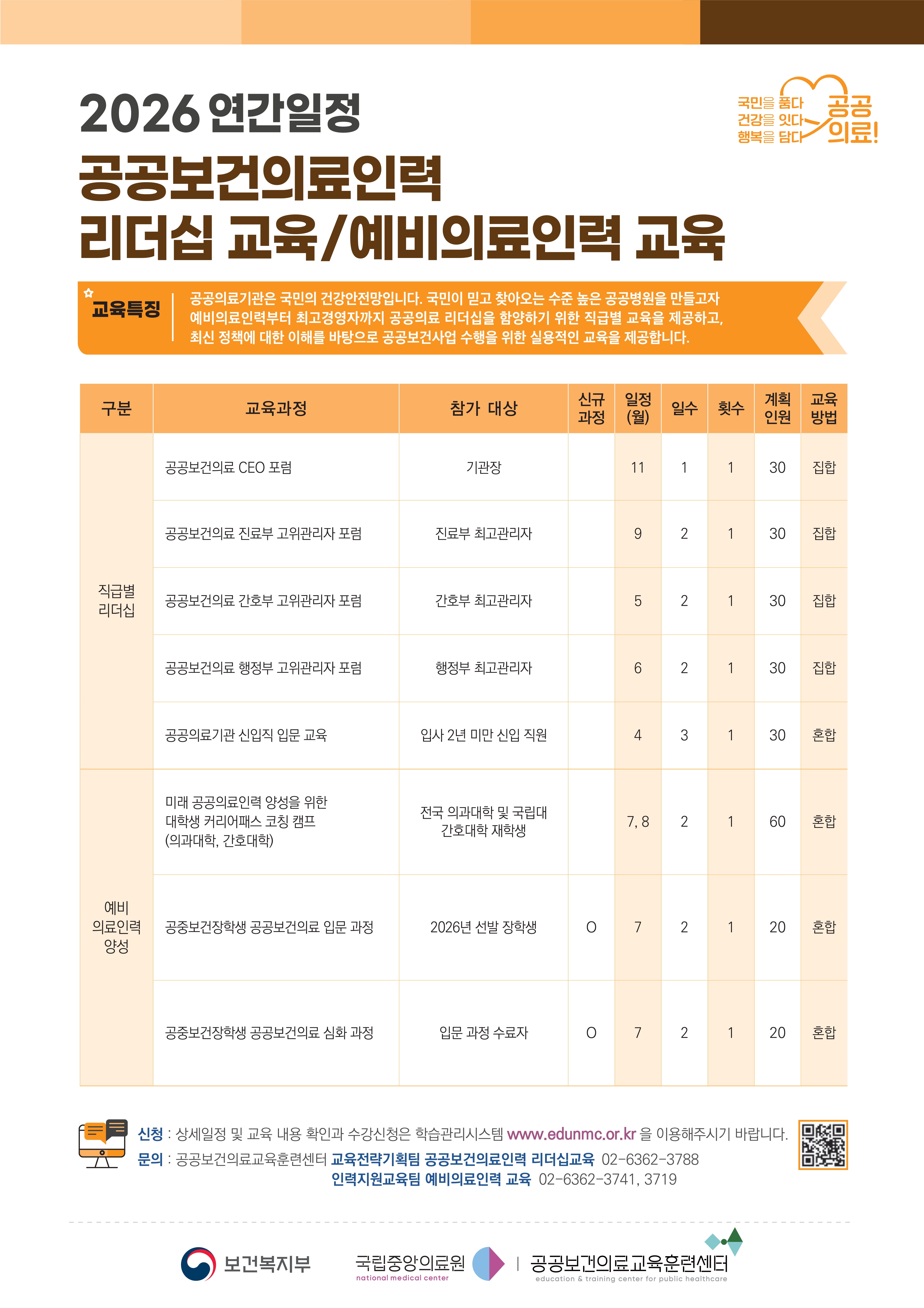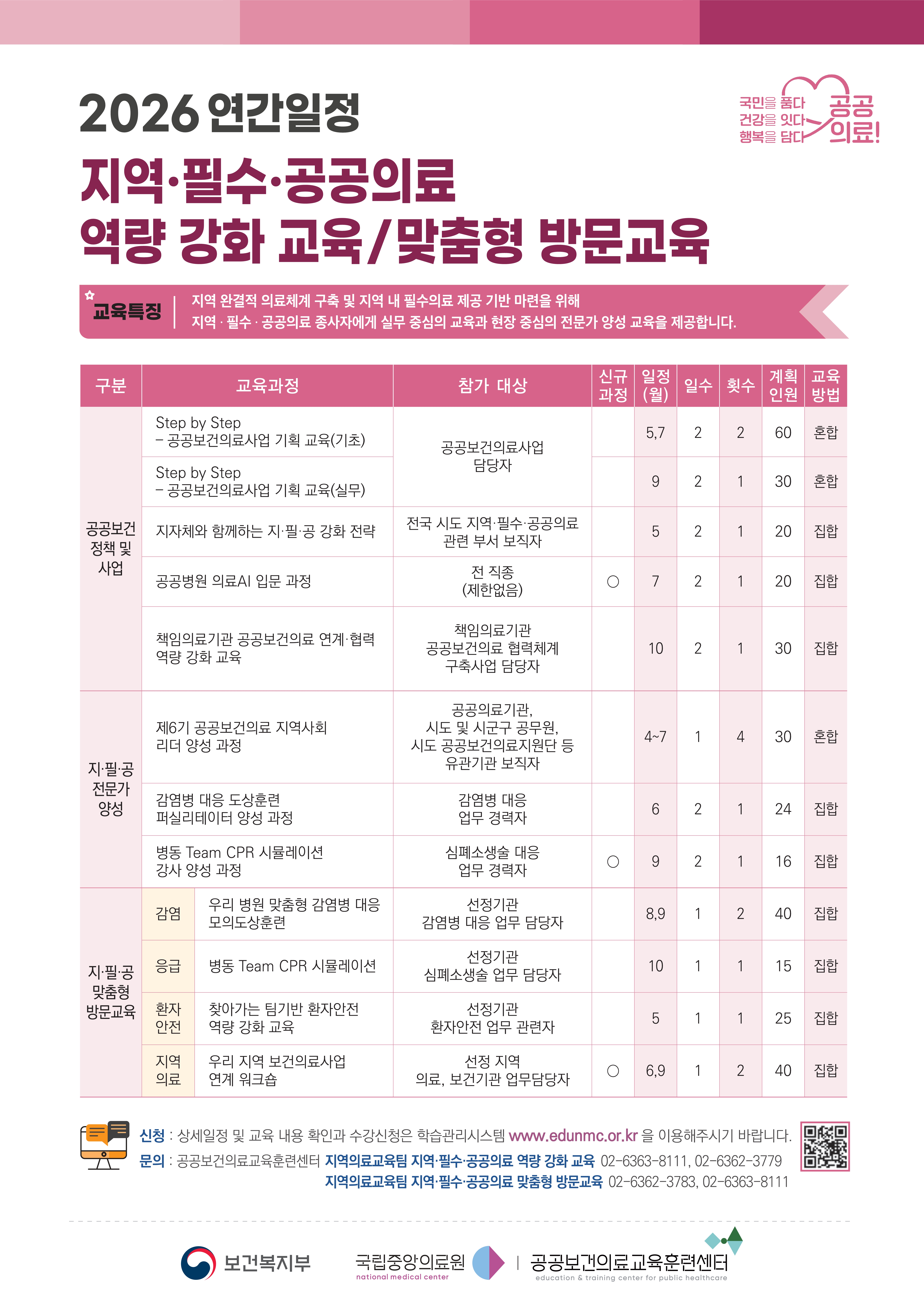 2026년 공공보건의료교육 연간일정